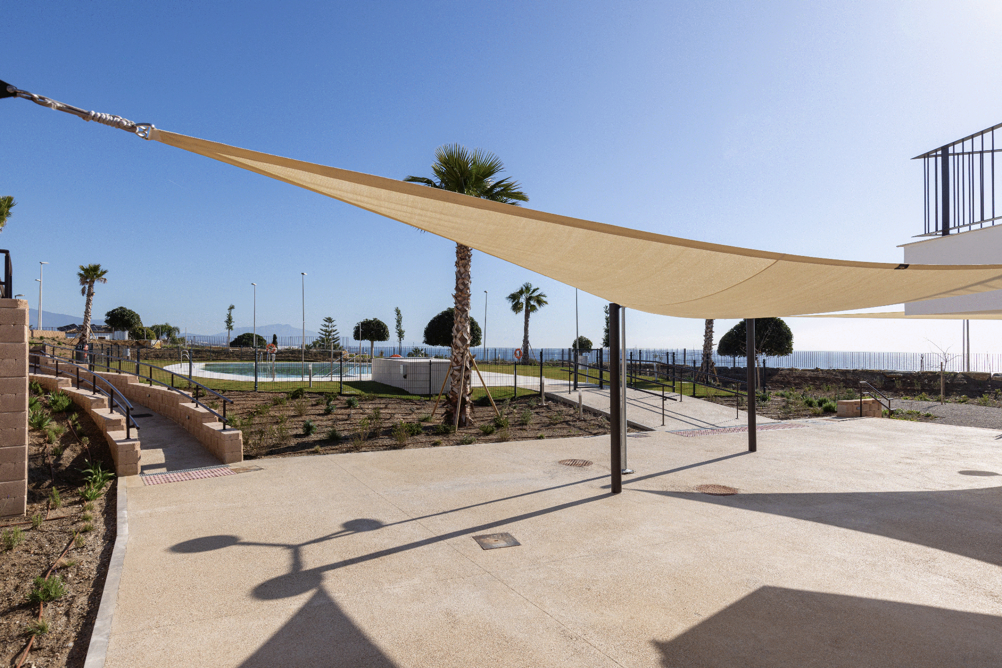 Die Anlage wurde Anfang 2024 fertiggestellt (Animiertes Video). Sie liegt auf einem kleinen Hügel, der einen Rundumblick erlaubt - von den Bergen bis zur Meer; von Afrika bis Gibraltar